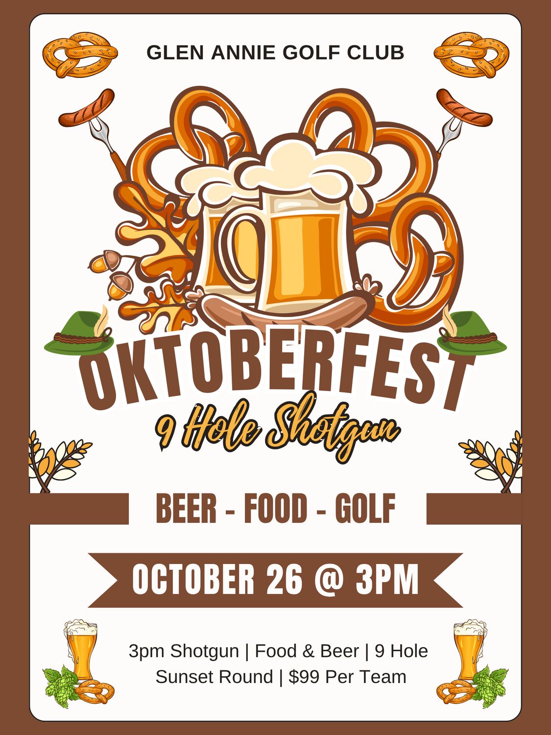 Prost! 🍻 Join us at Glen Annie Golf Club for an afternoon of beer, food, and golf — the most important things in life! Celebrate Oktoberfest on the course with a fun and festive 9-hole shotgun featuring ice-cold beer, soft pretzels, and great company.